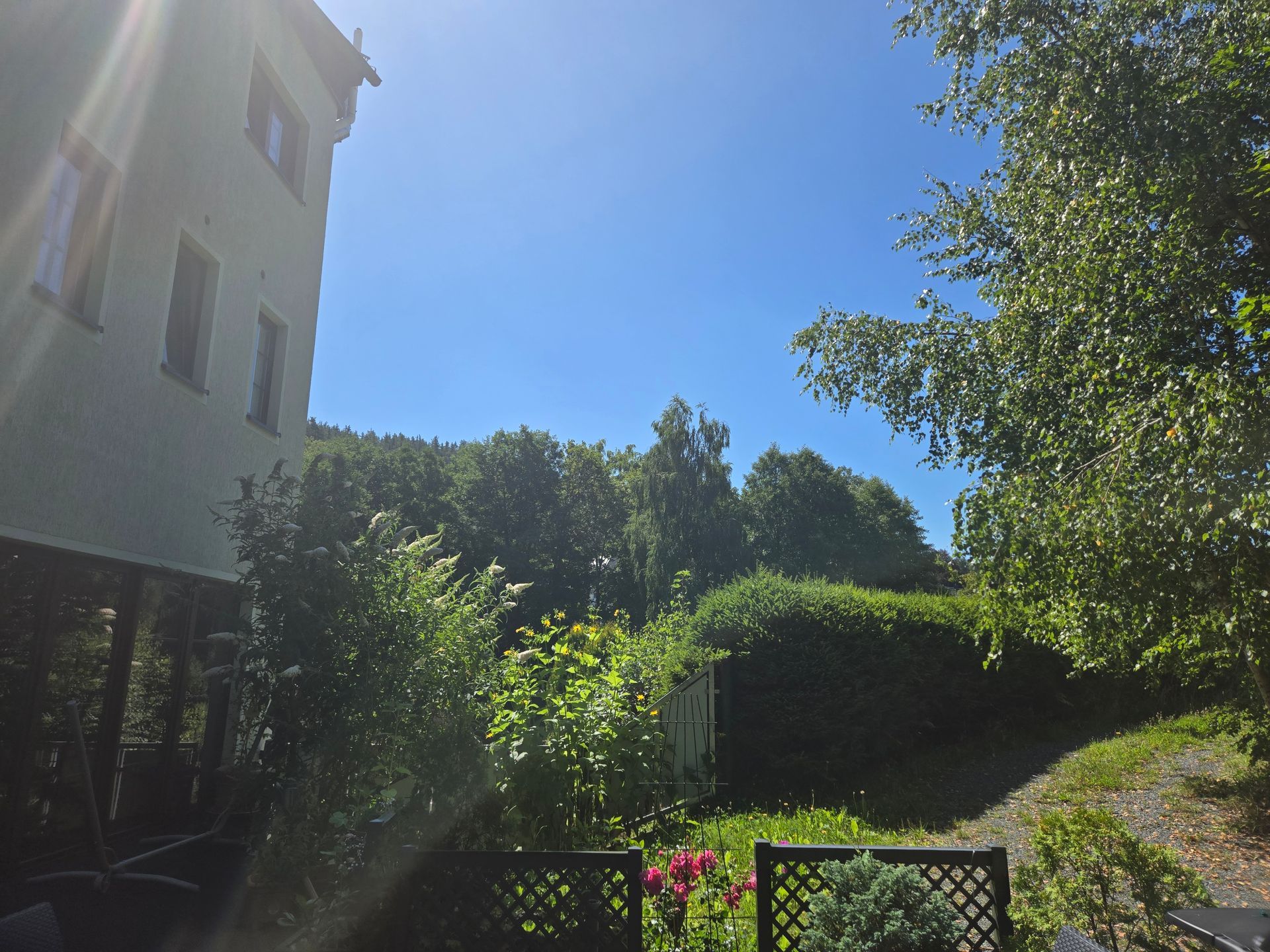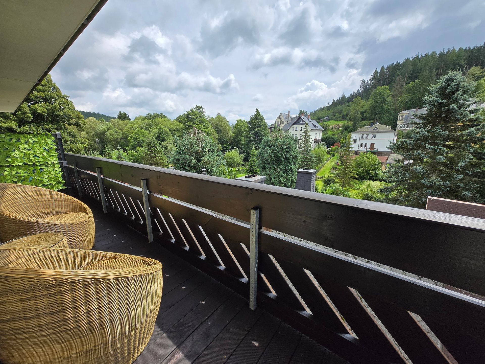 mit seiner besonderen herrlichen Aussicht inmitten von Wald umsäumten Tal.