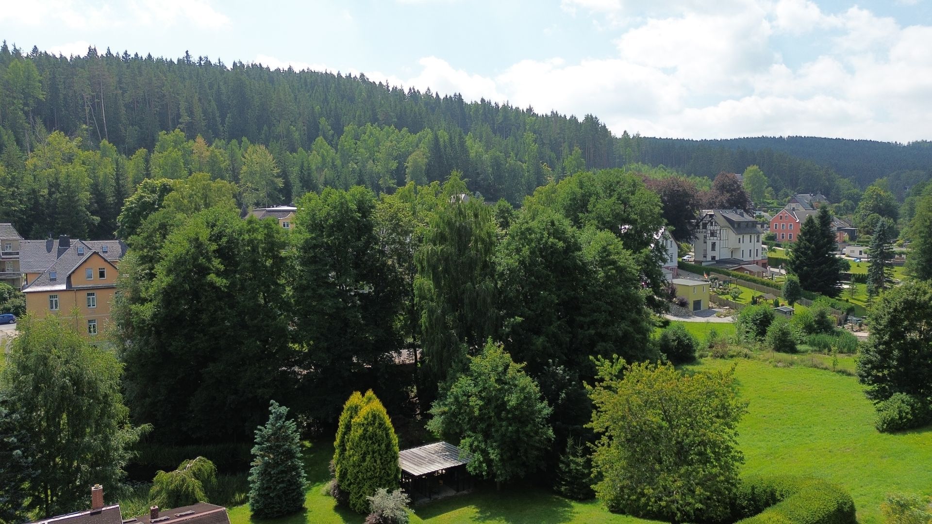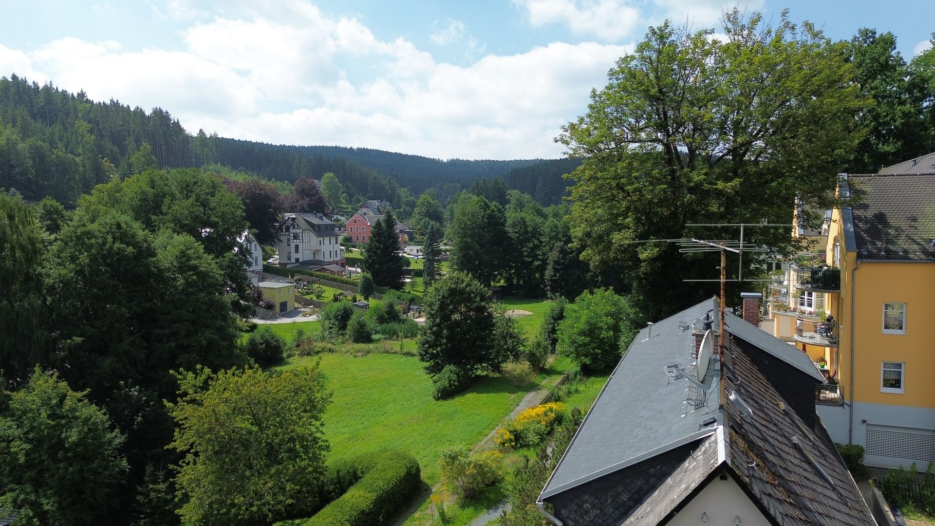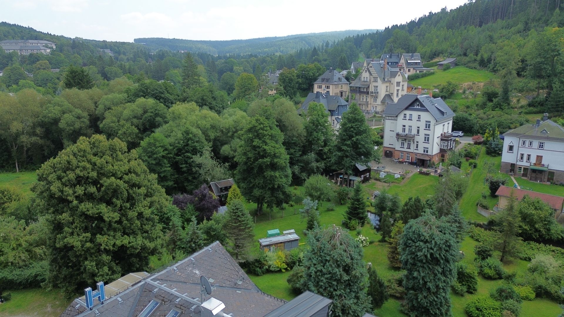 mit seiner besonderen herrlichen Aussicht inmitten von Wald umsäumten Tal.